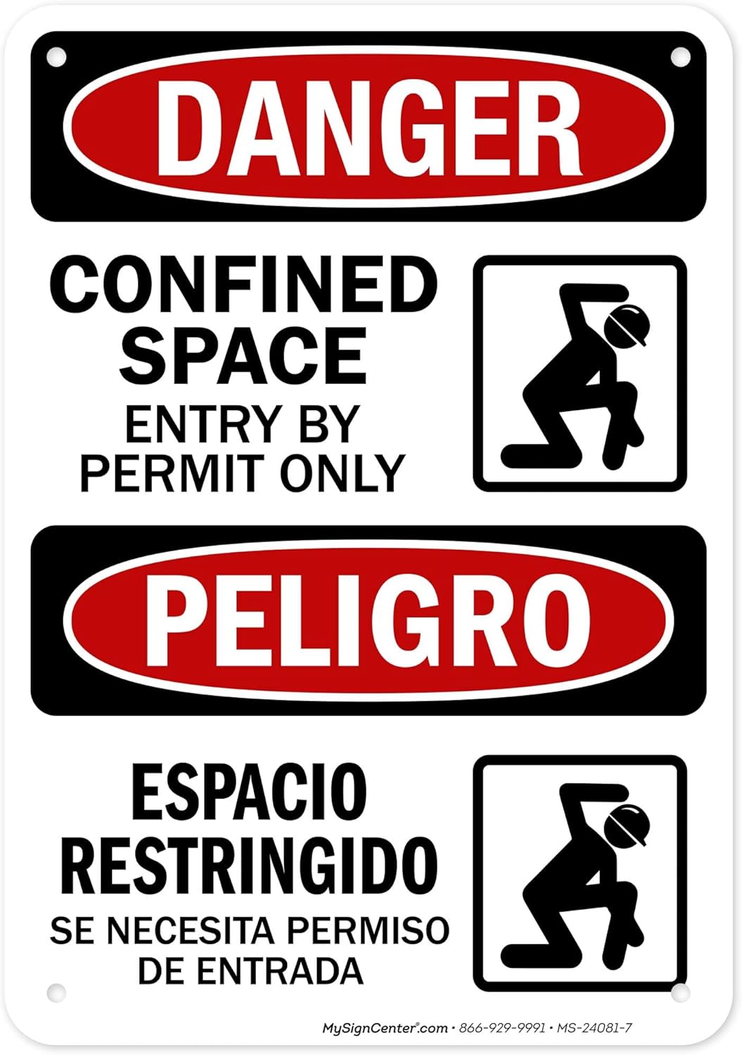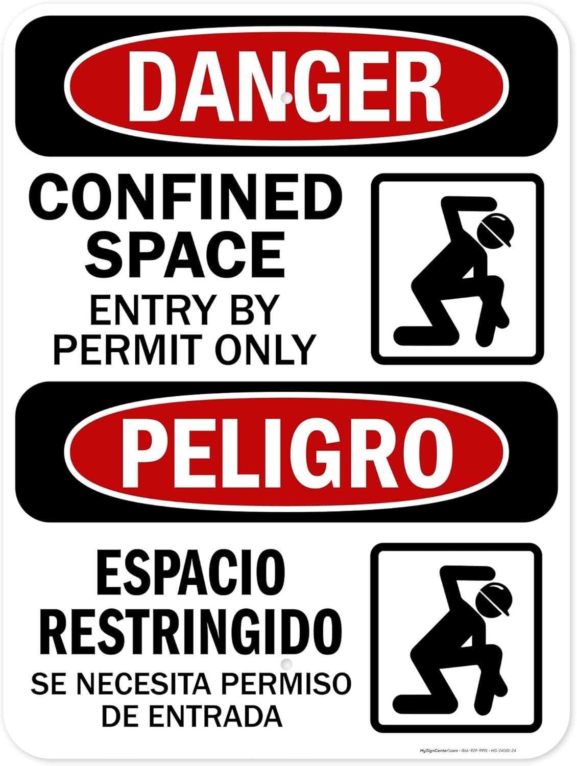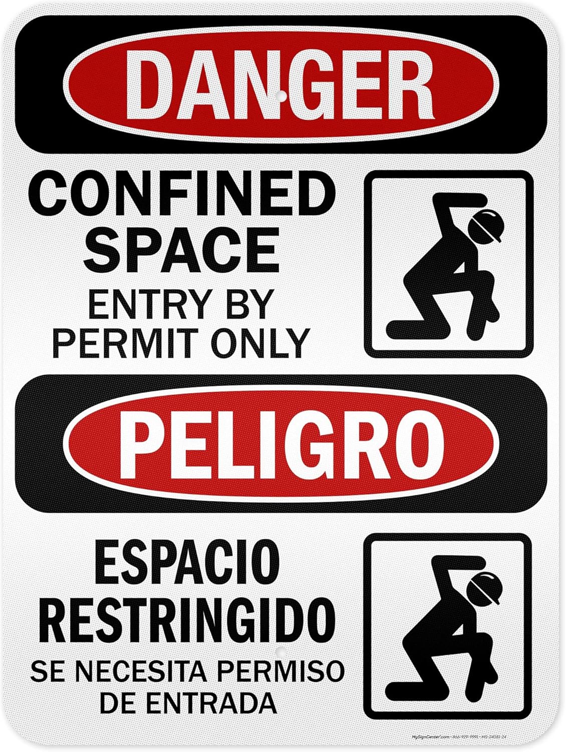 Danger Confined Space Entry By Permit Only With Graphic Bilingual Sign, 12x18 Inches, 55 mil thick HDPS (high density polystyrene), Made in USA by My Sign Center